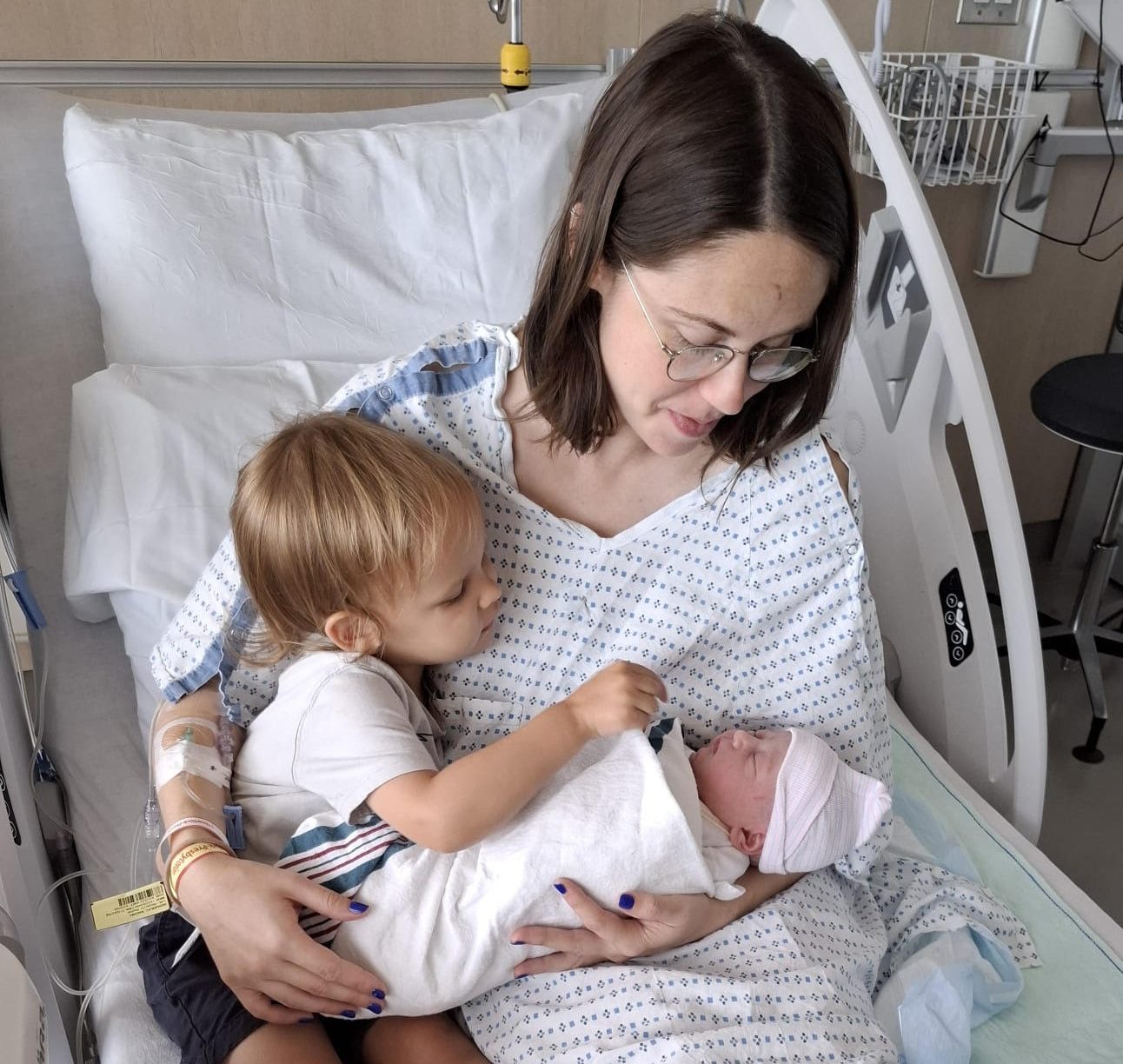 - Introducing her son to his new baby sister